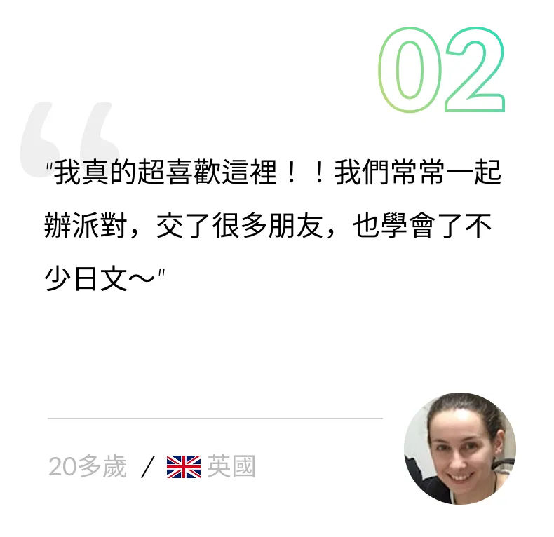 有的!我們一半的住戶是日本人,大家會自然地在生活中成為朋友。
