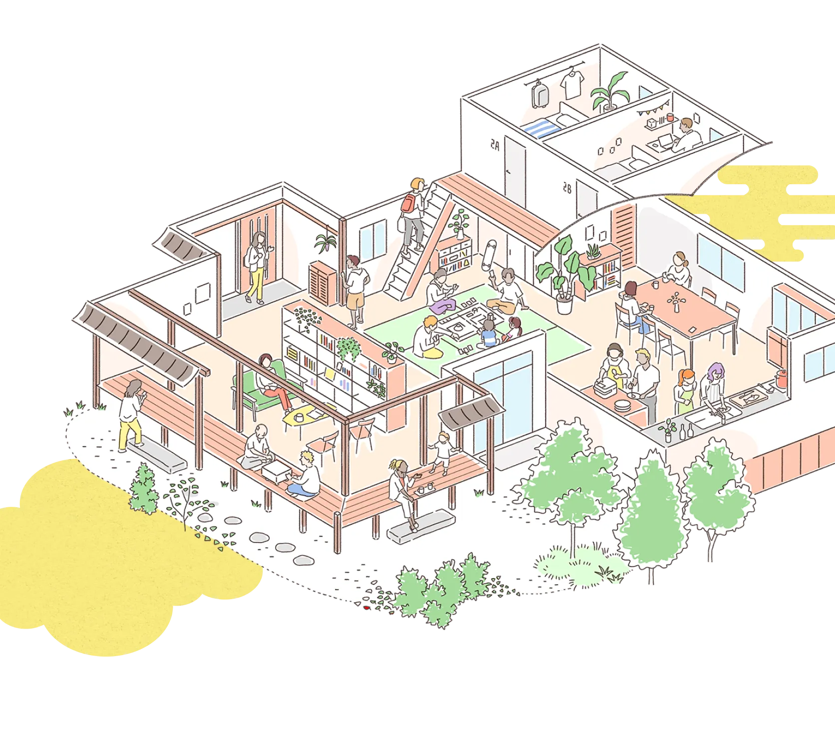 我們寬敞的客廳空間達67榻榻米,是你和室友拉近距離的最佳場所。在這獨特的 Borderless House,享受日式庭園的優雅與傳統茶室的古樸,深刻體驗日本文化的精髓,感受四季變化的美麗,與來自全球的室友一起創造珍貴的回憶,共度美好時光。