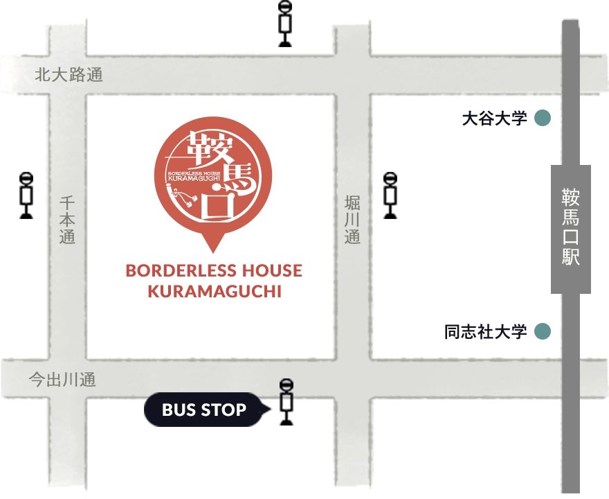 距離京都鞍馬口Share House五分鐘的步程距離即有通往四条、京都站、和円町的公車站。
